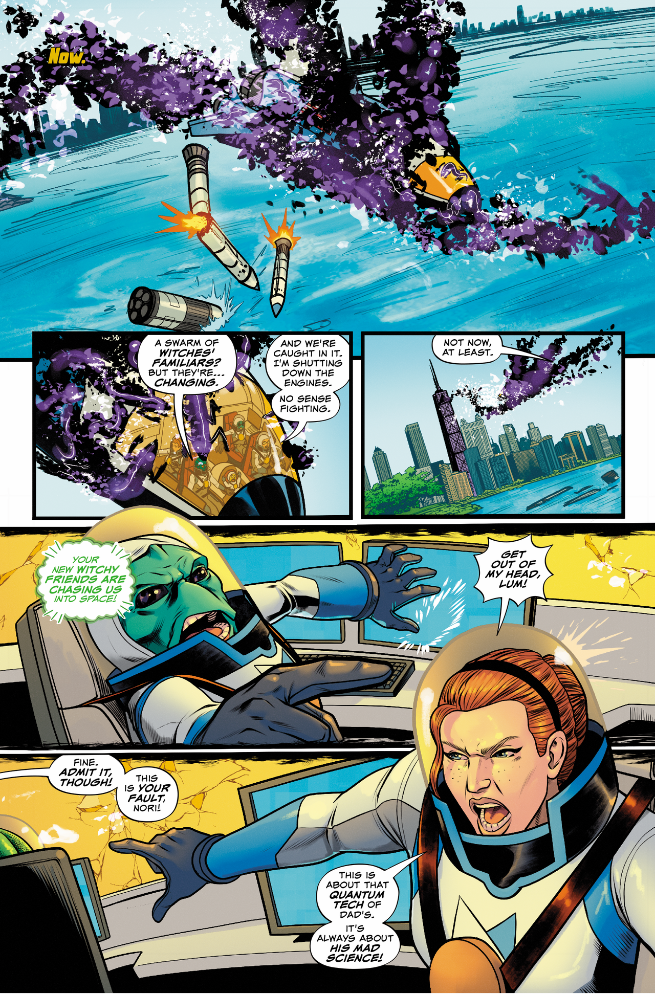This new mini-series, Spell of the Space Witches—while a stand-alone story, perfect for new readers—builds on a lot of the themes from the first series: destiny, power, identity. We examine what it’s like to become your own person in and apart from your family. And we look at how power and the pursuit of it corrupts. It’s all very relevant to what’s going on in our world today. But note: , is the antithesis to the nihilism that surrounds us. It’s a kind of antidote to the news cycle. Sometimes I call it “Feel-good fiction for a reality that’s not so great.” Reading it, you might get scared, you might stop and think—but in the end, you’re going to have fun. We’re giving you rockets into outer space, witchcraft, and the dramas of high school, not to mention werewolves and zombie babies!